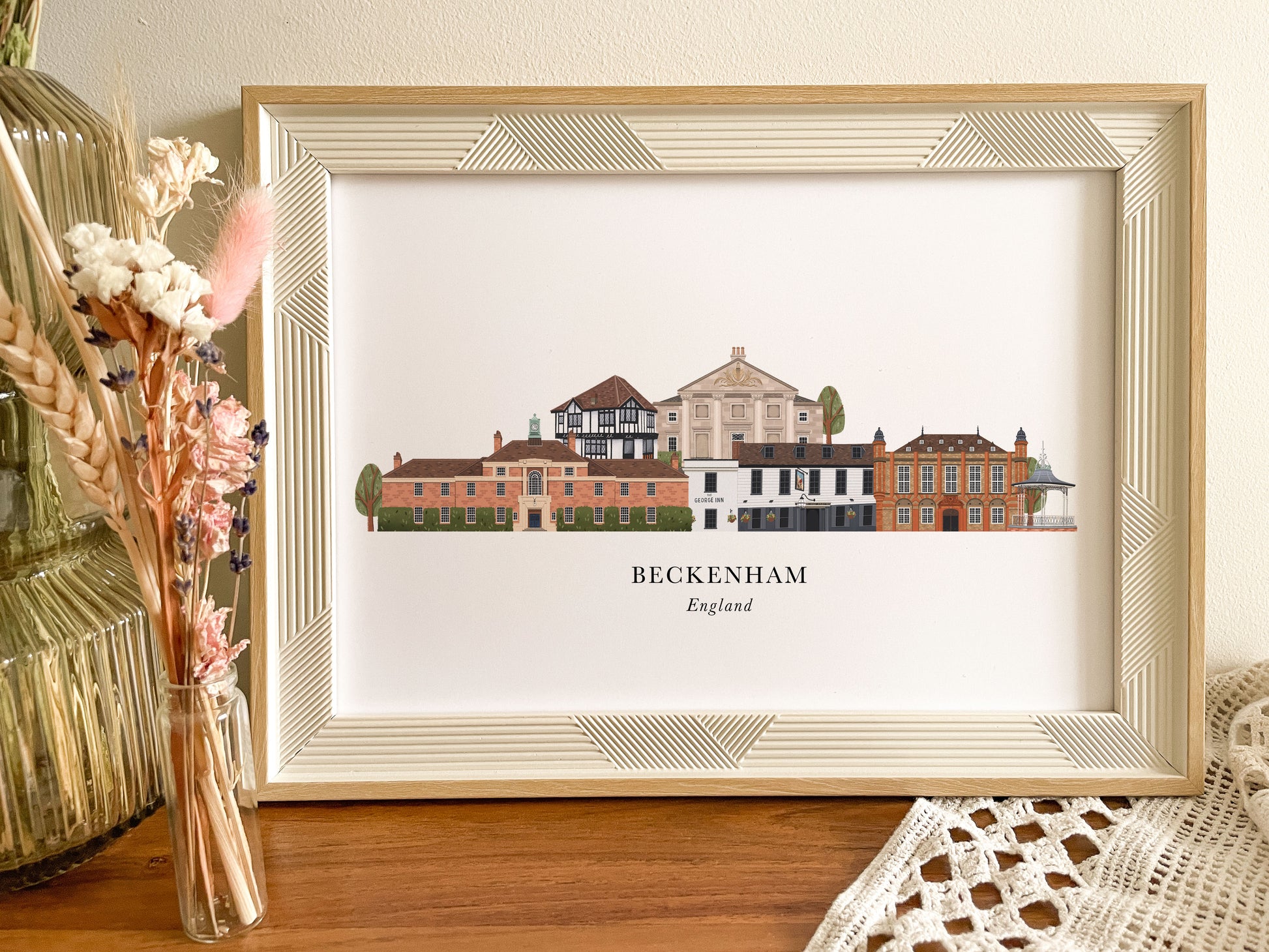 This art print features the most popular landmarks in Beckenham, detailing the stunning architecture and history the town has to offer.