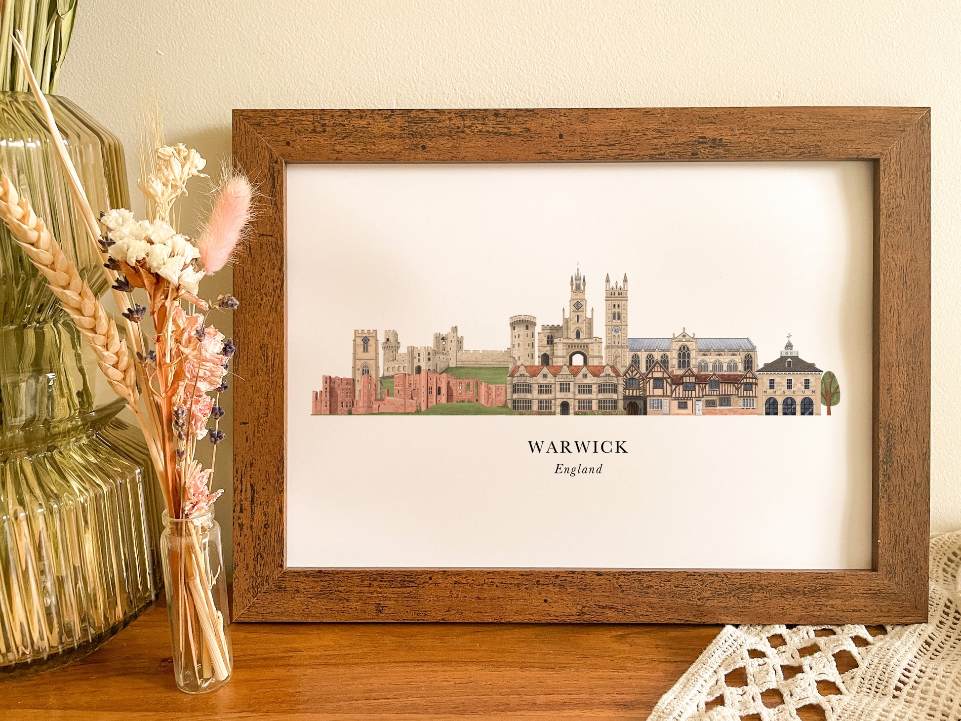 This art print features the most popular landmarks in Warwick, detailing the stunning architecture and history the city has to offer.